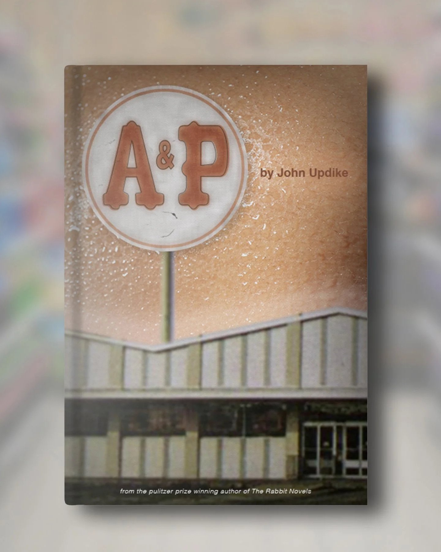 Self-directed cover design for John Updike’s short story A&P, originally published in The New Yorker on July 22, 1961. The design draws on the story’s setting and point of view, using a period-accurate A&P storefront to allude to “Queenie’s” bathing suit top against a field of skin. The composition mirrors Sammy’s fixation and the charged imbalance between observation, desire, and consequence, anchoring the narrative in a single, symbolic image.